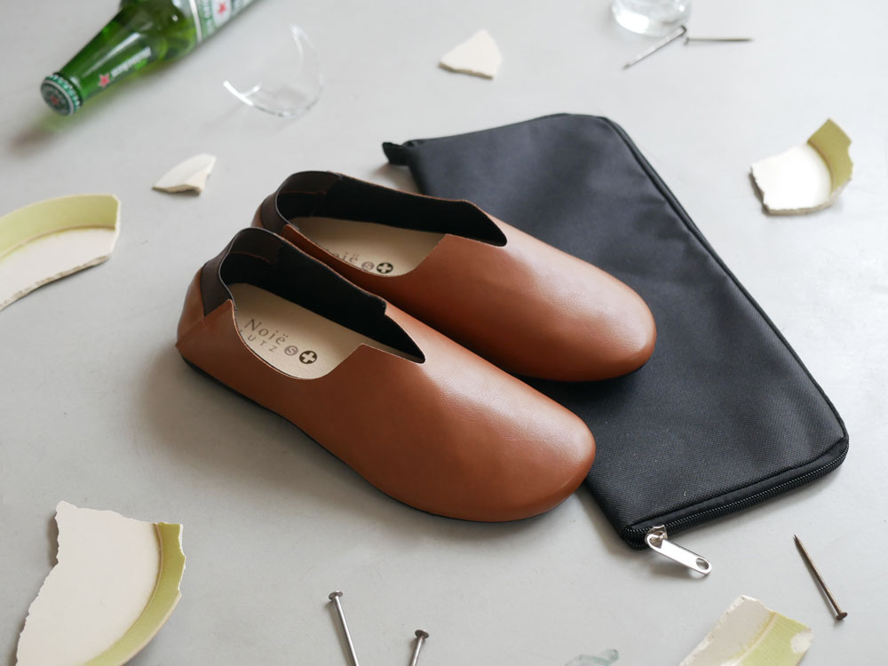 【Les Plier Noie Lutz/レプリエノイエルッツ】防災携帯スリッポン キャメルブラウン