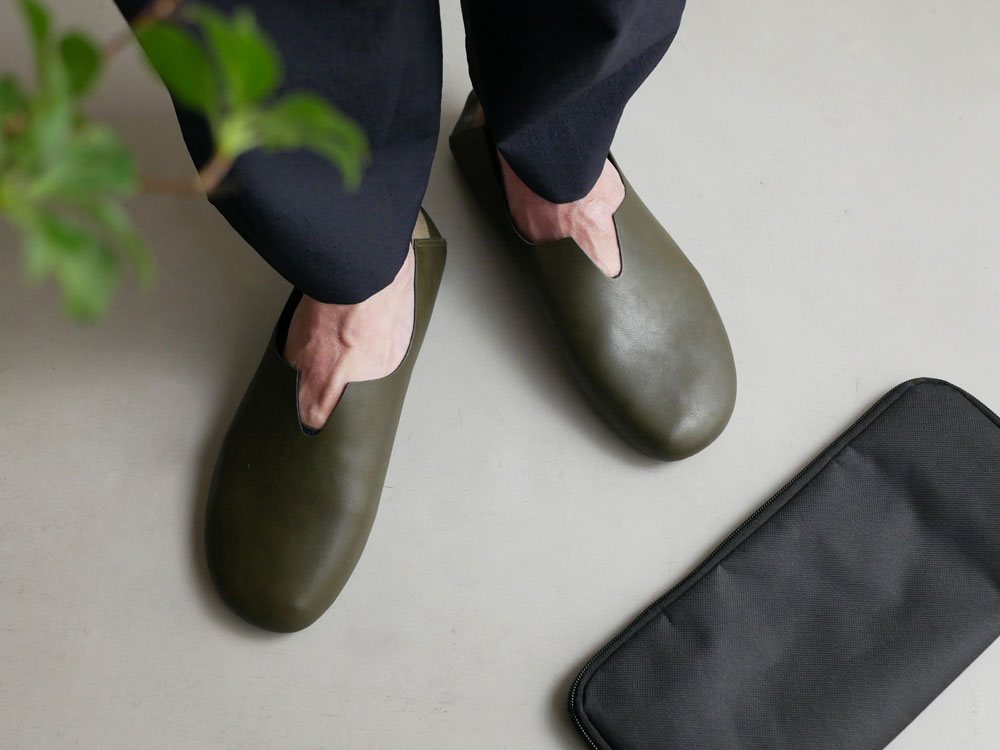 【Les Plier Noie Lutz/レプリエノイエルッツ】防災携帯スリッポン オリーブグリーン