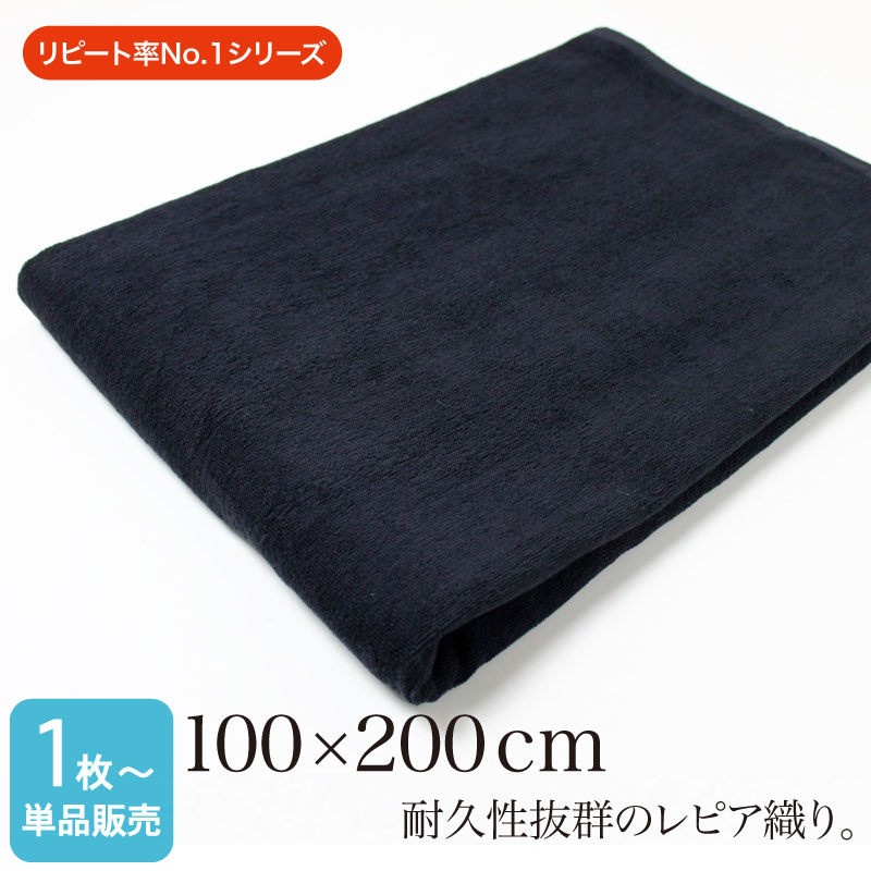 業務用 レピア織り スレン染め 超大判バスタオル・2000匁 約100×200cm (ブラック/黒)