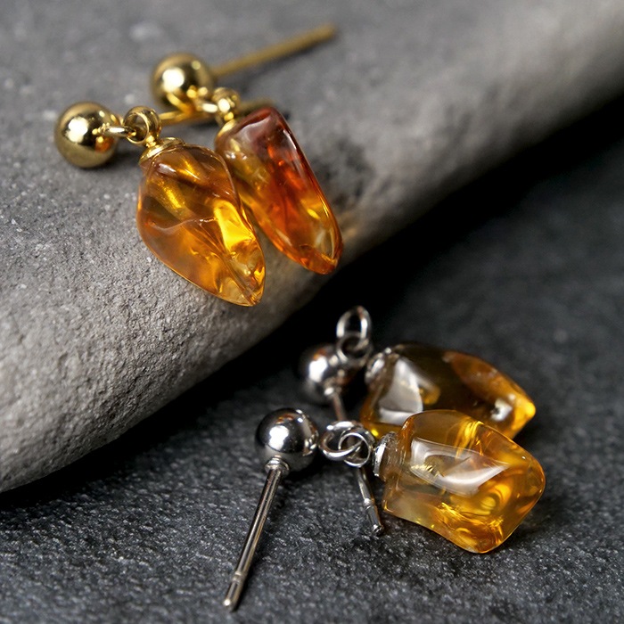 ゴールデンアンバー スタッドピアス バルト海産 日本製 11月誕生石 8mm 天然石 琥珀 アクセサリー レディース ジュエリー ...
