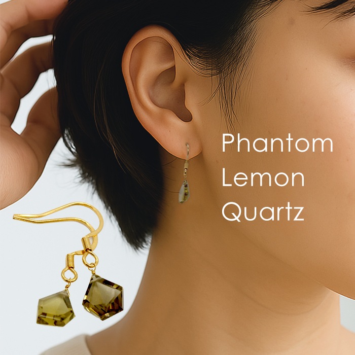 ファントムレモンクォーツ 多角形カット フックピアス 天然石 ブラジル産 日本製 6月誕生石 レディース アクセサリー 爽やか 宝...