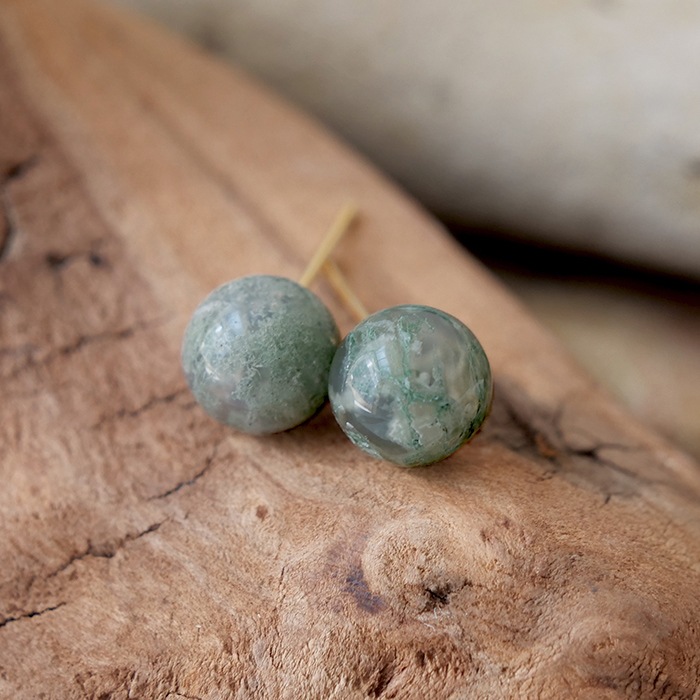 モスアゲート スタッドピアス 天然石 インド産 日本製 癒し パワーストーン 緑 自然 小ぶり ナチュラル カジュアル レディース...
