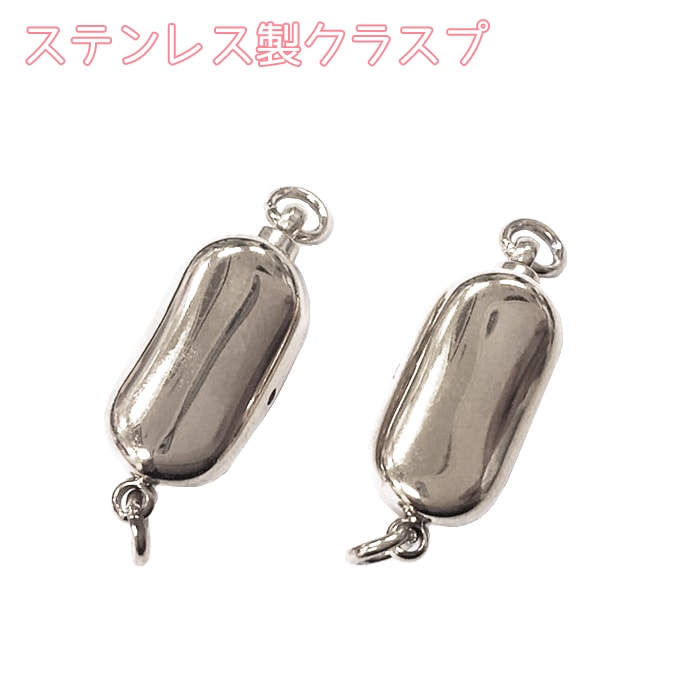 【8.ビーンズクラスプ シルバー】ステンレス製 金属アレルギー対応 1個売り 基礎金具 ネックレスパーツ クラスプ 留め具 留め金...