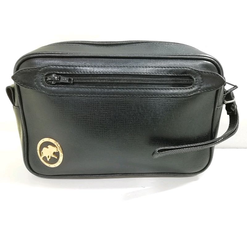 【中古】ハンティングワールド セカンドバッグ ブラック×レザー .1.I.2 95