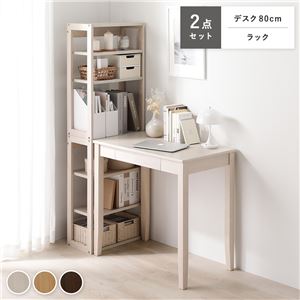 Office168天然木 デスクシリーズ 2点セット 〔 デスク 80cm幅 + ラック 〕 ホワイト デスクセット 学習机 引出...