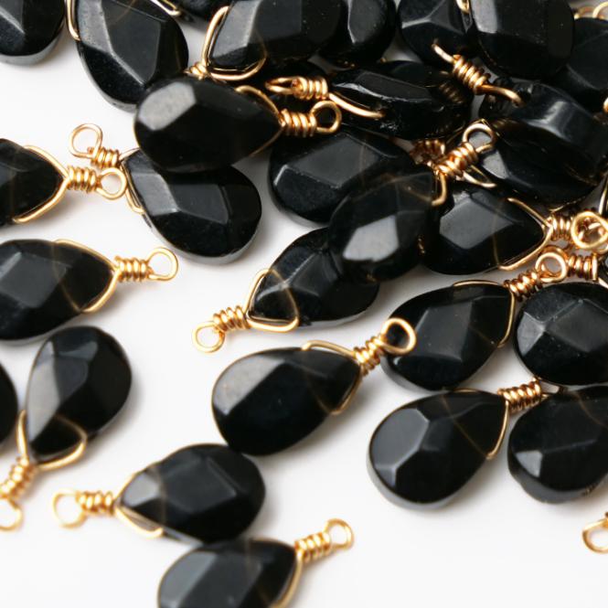 【天然石 オニキス】 チャーム シャンクビーズ 約15mm ハンドメイド材料 ピアス ネックレス素材
