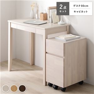 Office168天然木 デスクシリーズ 2点セット 〔 デスク 80cm幅 + キャビネット 〕 ホワイト デスクセット 学習机...
