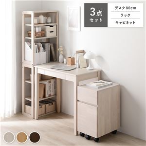 Office168天然木 デスクシリーズ 3点セット 〔 デスク 80cm幅 + ラック + キャビネット 〕 ホワイト デスクセ...