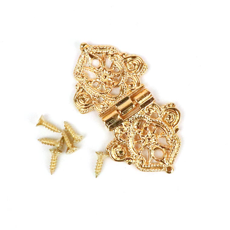 53mm×28mm 1個入 ドアヒンジ ゴールド / ネジ付 蝶番 レトロ調 煌びやか 細長 ひんじ ちょうつがい 丁番 ちょうば...