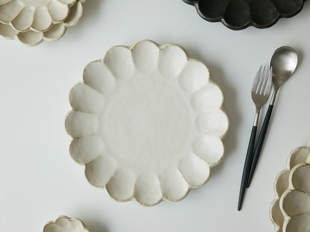 【TOJIKITONYA/トウジキトンヤ】ぽってりとした花皿 リンカ プレート / 24cm 白練