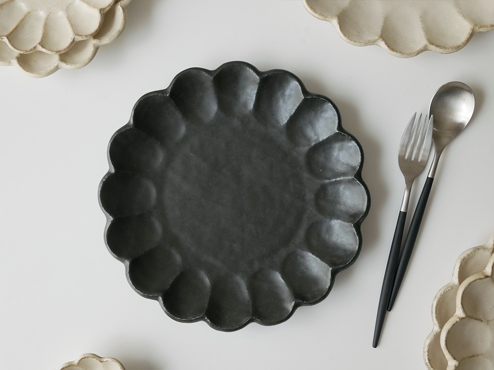 【TOJIKITONYA/トウジキトンヤ】ぽってりとした花皿 リンカ プレート / 24cm 黒練