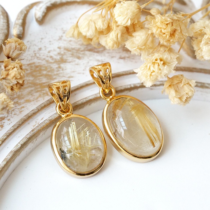 ルチルクォーツ トップ オーバル 天然石 ブラジル産 4月誕生石 ゴールド パワーストーン 金針 水晶 ペンダントトップ 金運 開...