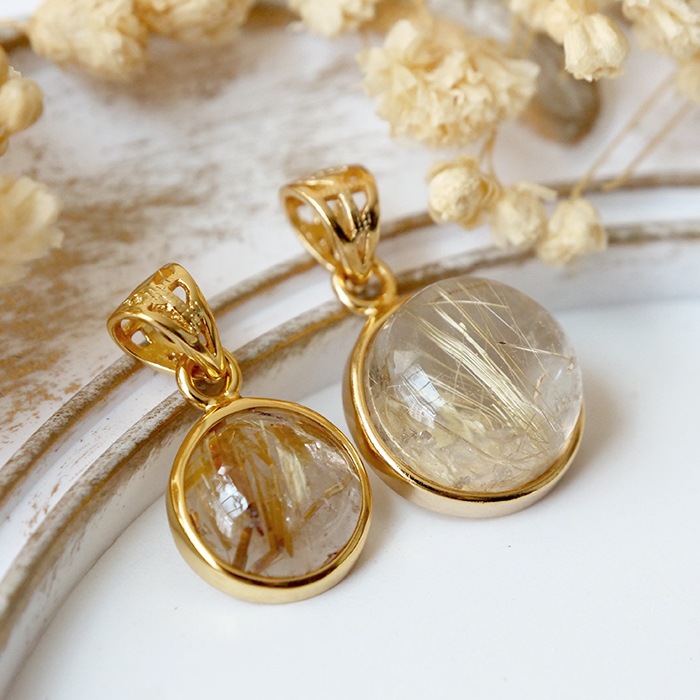 ルチルクォーツ トップ ラウンド 天然石 ブラジル産 4月誕生石 ゴールド パワーストーン 金針 水晶 ペンダントトップ 金運 開...