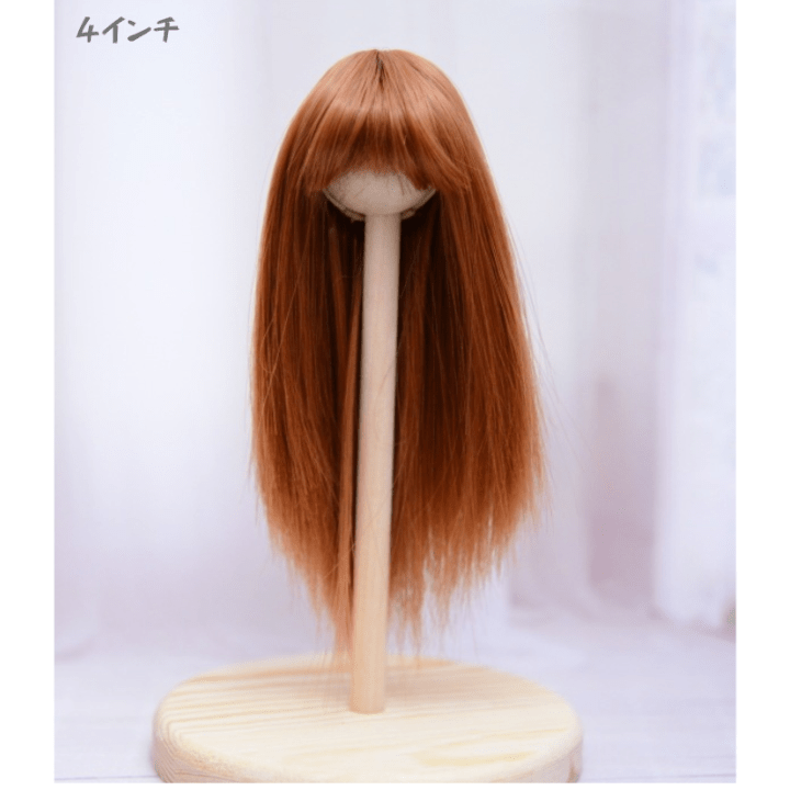 【4インチ】 耐熱ドール用ウィッグ シャギーストレートロング オレンジブラウン