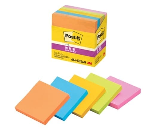 3M ポストイット 強粘着 ノート 混色 75×75mm 90枚×5 654-5SSAN 付箋 スリーエム