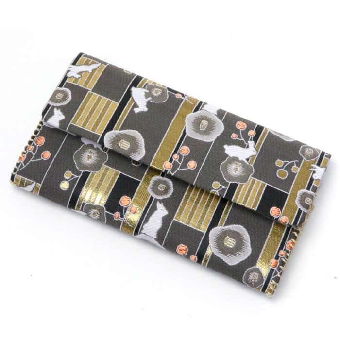 茶道具 懐紙入れ 帛紗ばさみ 三つ折懐紙入れ 交織 梅にうさぎ 黒