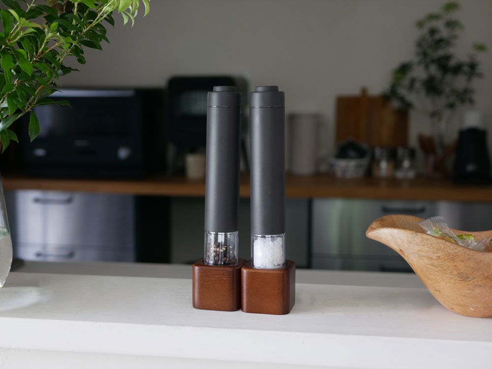 【recolte/レコルト】アカシアスタンド付きソルト&ペッパー電動ミル グレー