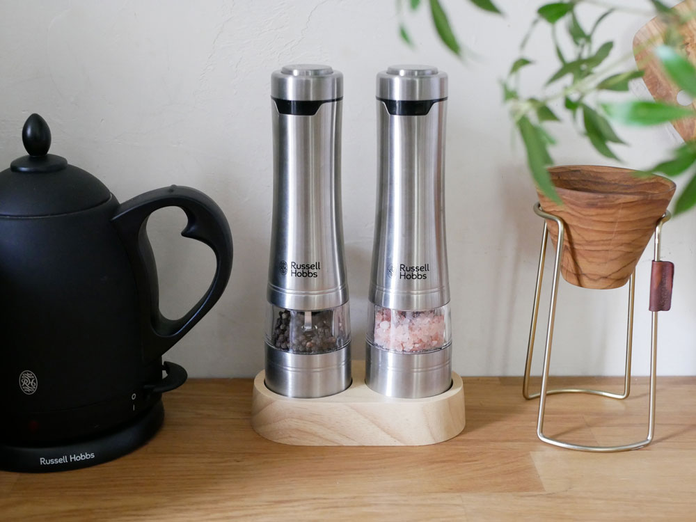 【Russell Hobbs/ラッセルホブス】電動ミル ソルト&ペッパー ウッドスタンドセット