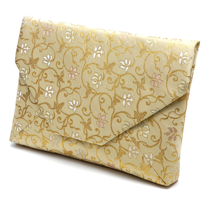 【茶道具 数奇屋袋】 数寄屋袋(すきや袋)花文唐草 白 正絹 名物裂 中川政七商店謹製