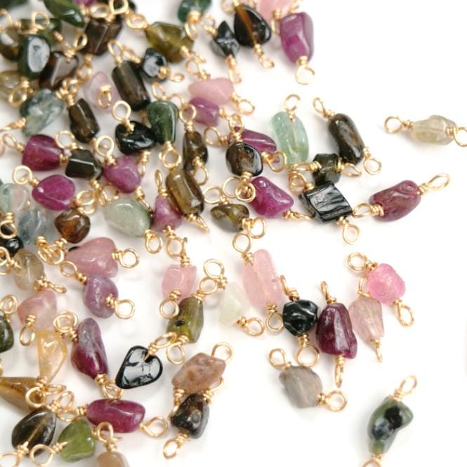 【天然石 トルマリン】コネクター チャーム シャンクビーズ 約4×6mm ピアス ネックレス素材
