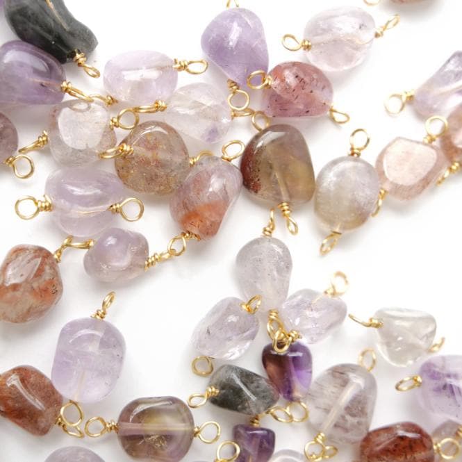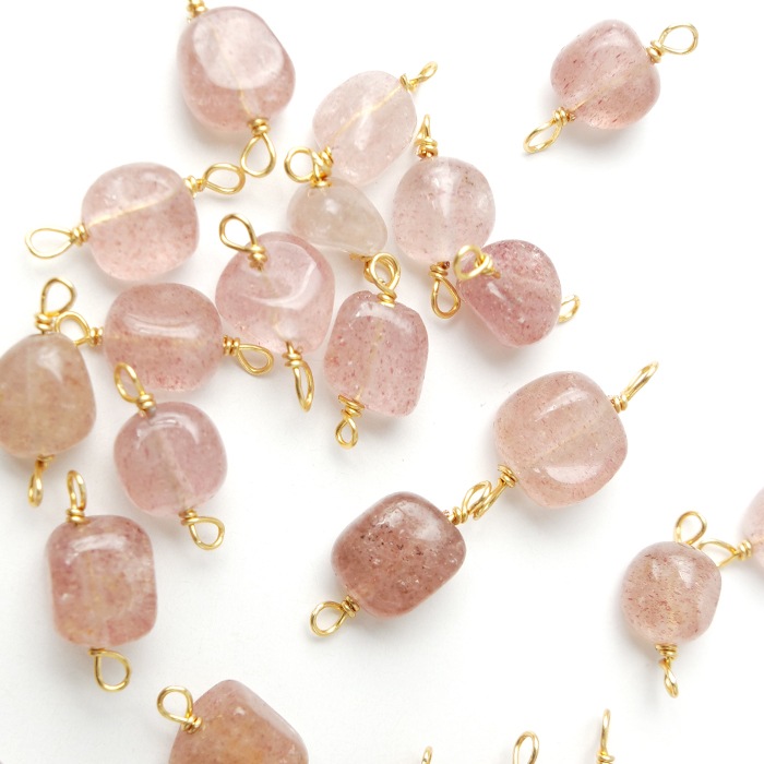 【天然石 ストロベリークォーツ】コネクター チャーム シャンクビーズ 約6×8mm ピアス ネックレス素材