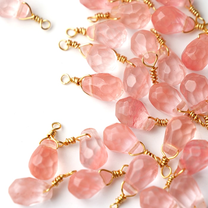 【天然石 チェリークォーツ】しずぐ 雫型 チャーム シャンクビーズ 約15×9mm ピアス ネックレス素材
