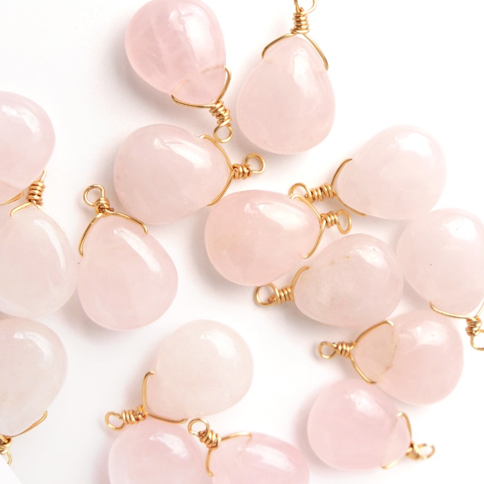 【天然石 ローズクォーツ】 チャーム シャンクビーズ 約15mm ハンドメイド材料 ピアス ネックレス素材