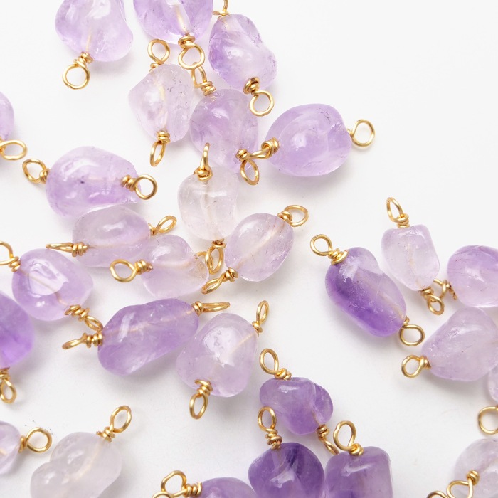 【天然石 アメジスト】コネクター チャーム シャンクビーズ 約6×8mm ピアス ネックレス素材