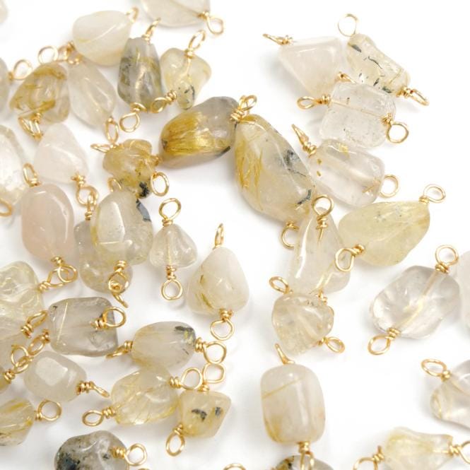 【天然石 金ルチル】コネクター チャーム シャンクビーズ 約6×8mm ピアス ネックレス素材