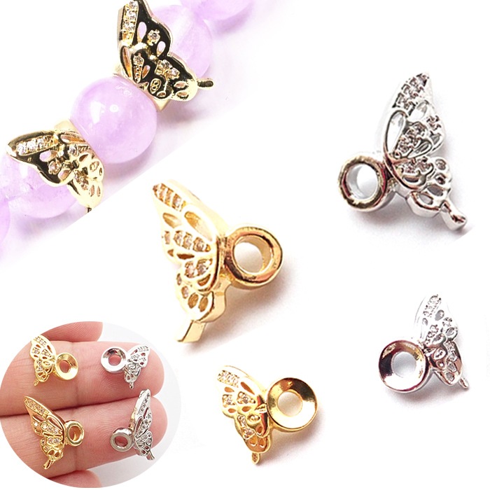 蝶々ロンデル【1ペア 左右セット】ゴールド シルバー 天然石 数珠 パーツ K18真空メッキ ハンドメイド