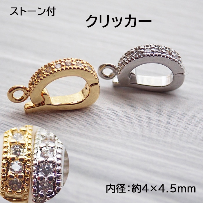 77.ストーン付き クリッカー パーツ シンプル ゴールド シルバー 1個 開閉式 バチカン 金具 ハンドメイド
