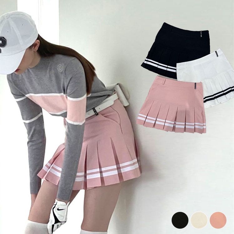 韓国ゴルフウェア バイカラーライン ミニ丈 プリーツスカート