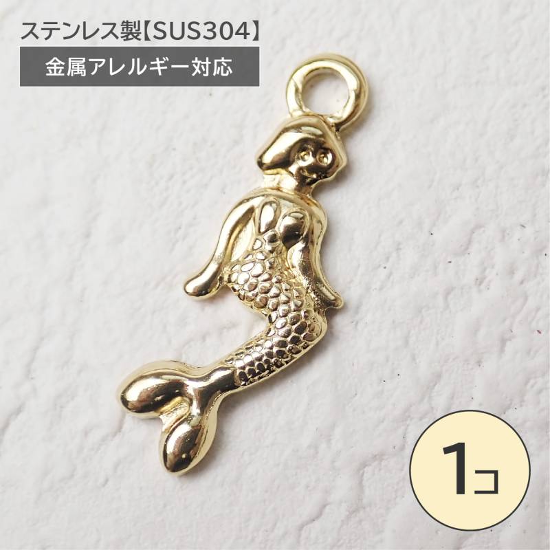 ステンレス製【SUS304】 金属アレルギー対応 人魚 マーメイド チャーム カン付き