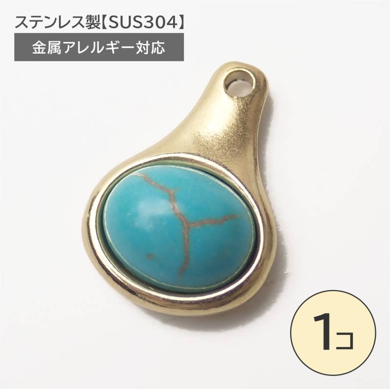 ステンレス製【SUS304】 金属アレルギー対応 ターコイズ チャーム しずく型 穴あり