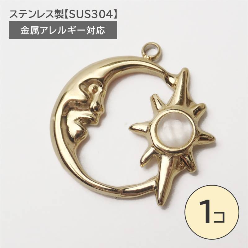 ステンレス 【SUS304】 チャーム 太陽 ゴールド 丸カン付き ハンドメイド 材料 パーツ 金属アレルギー対応