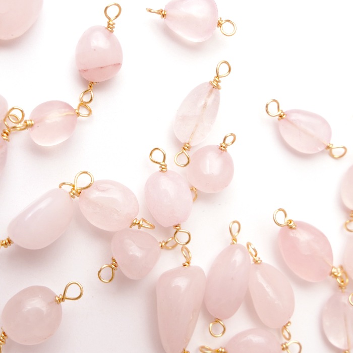 【天然石 ローズクォーツ】コネクター チャーム シャンクビーズ 約8×10mm ピアス ネックレス素材
