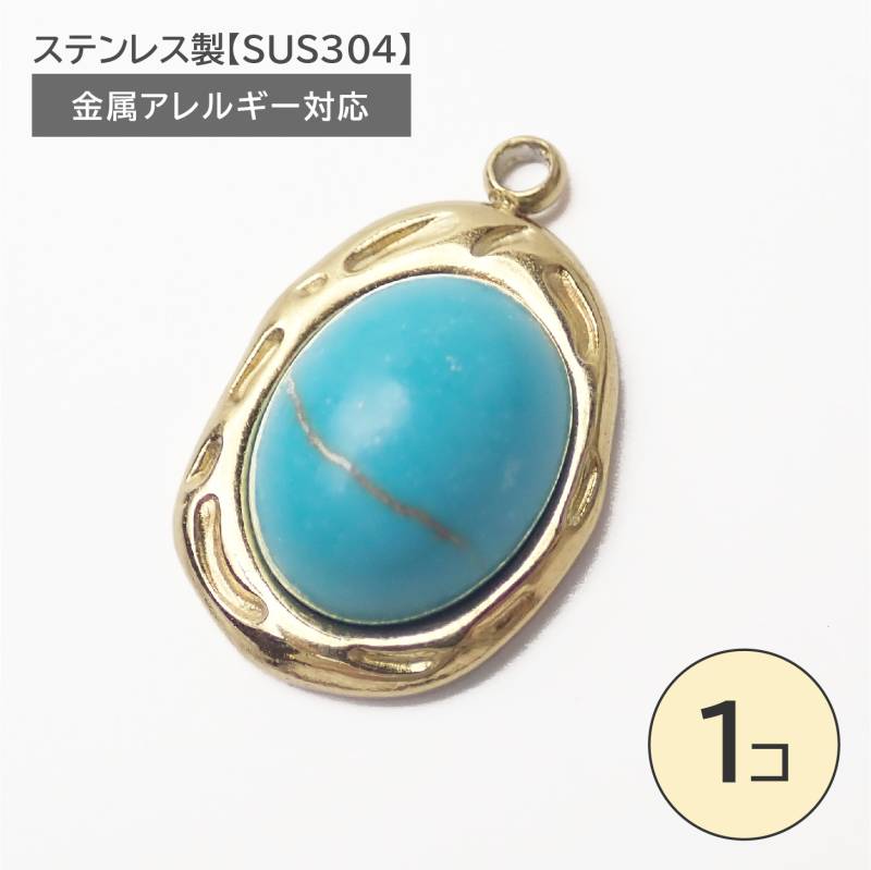 ステンレス製【SUS304】 金属アレルギー対応 ターコイズ チャーム カン付き