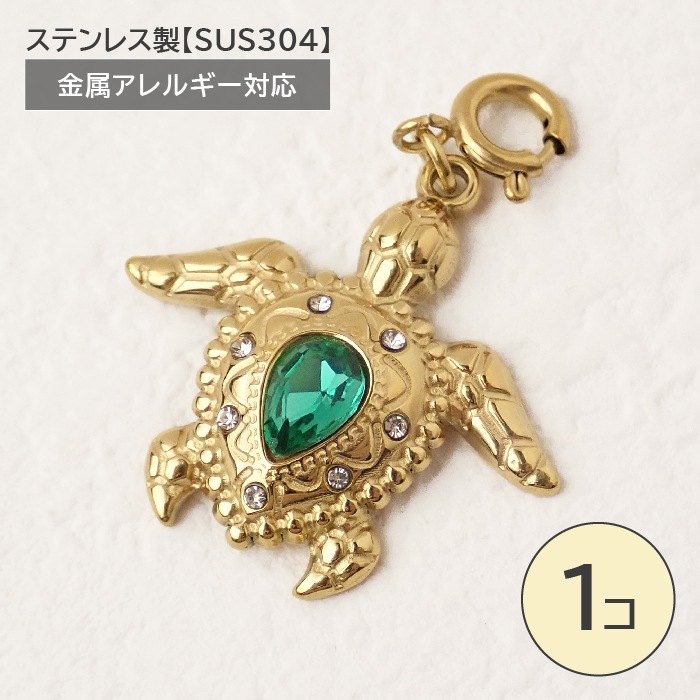 ステンレス製【SUS304】 金属アレルギー対応 カメ チャーム カン付き