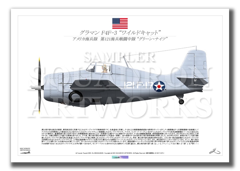 グラマン F4F-3 ワイルドキャット VMF-121 Green Knights “F-17” (A4サイズ Prints)
