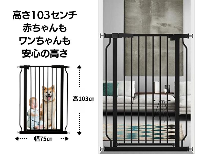 【中古】Seogva ベビーゲート ハイタイプ 高さ103cm 拡張フレーム付き 自動ロック 高さ100cm以上つっぱり式 穴開け...