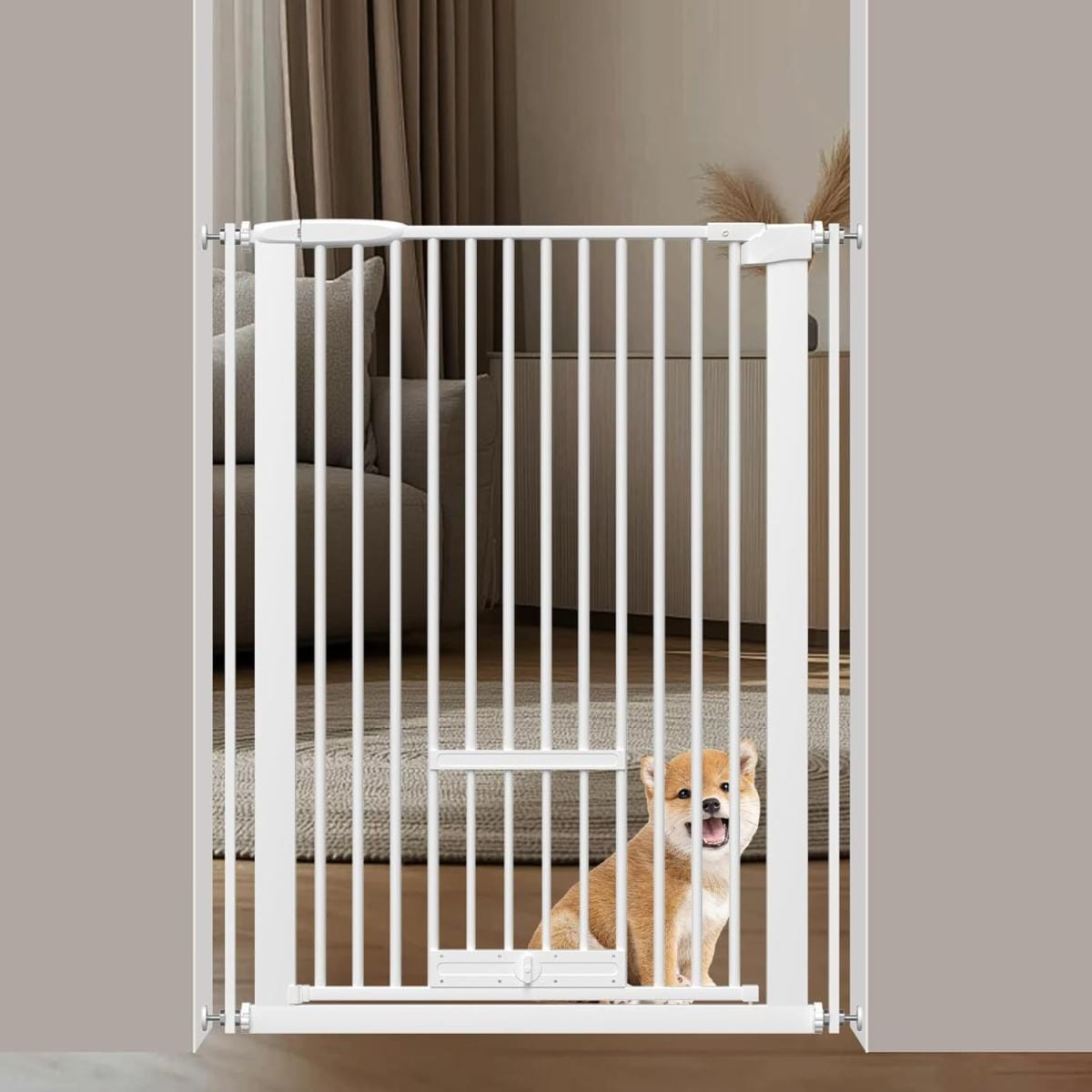 【中古】ペットゲート ペットドア付き 猫ドア付き 高さ103cm 猫ゲート 間隔3.5cm 過密フレーム付き ペットゲート ハイタ...