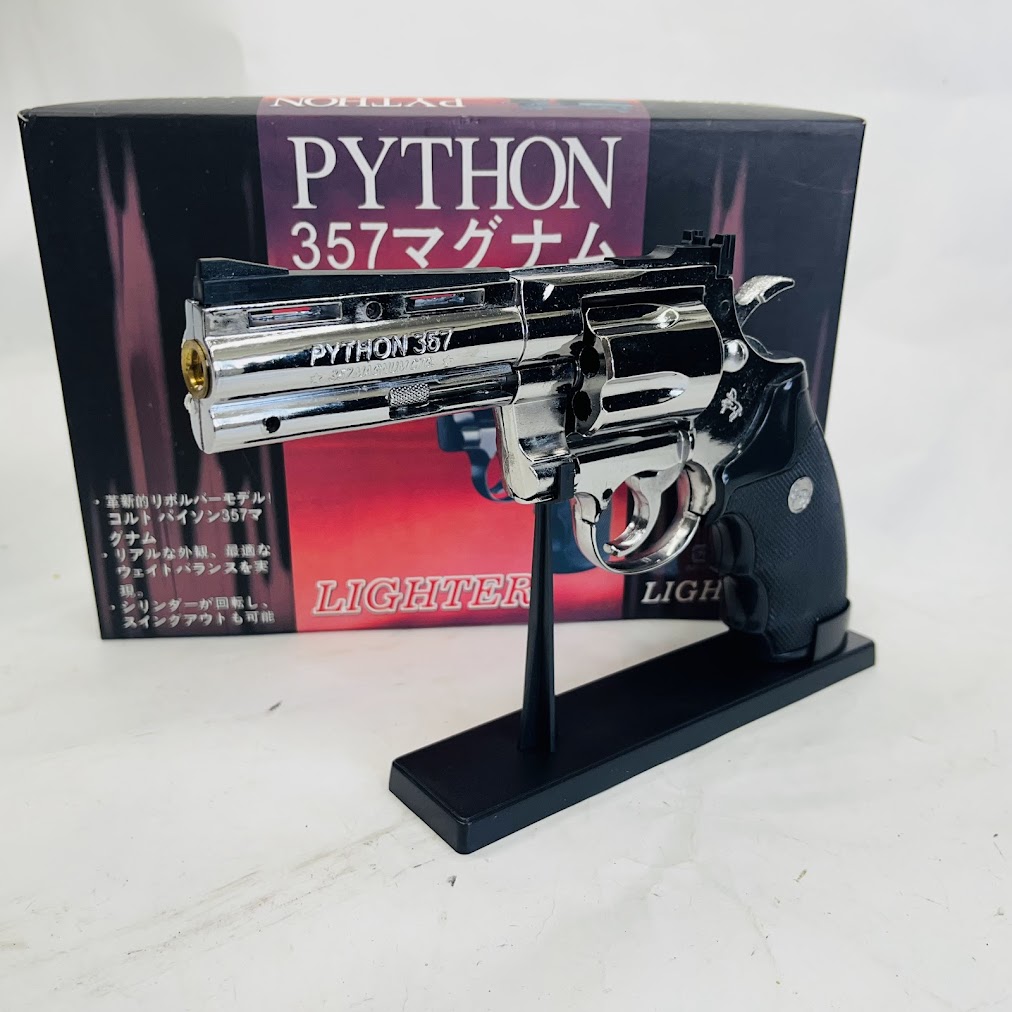 【未使用】Python 357 マグナム コレクターズ ライター, クロム仕上げ, リボルバーモデル, デスクトップディスプレイス...