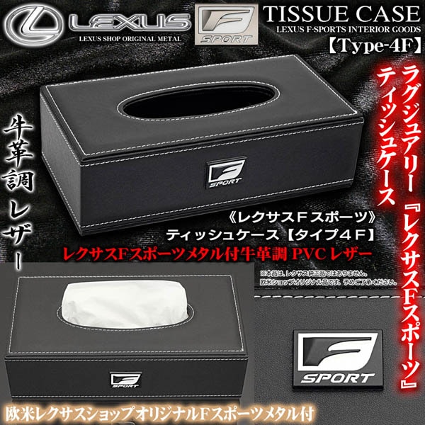 NX/RX/LX《レクサスFスポーツ》ティッシュケース/牛革調PVC合成レザー【タイプ4F/ブラック】Fスポーツメタル付/ブラガ