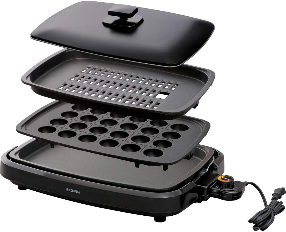 【動作確認済】【中古】アイリスオーヤマ 網焼き風ホットプレート プレート3枚 APA-137-B ブラック系