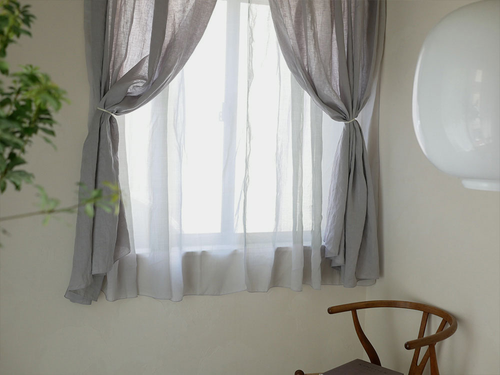 【natsusobiku】リネンのクリップ留めレースカーテン 1枚 S W130×H165cm グレー