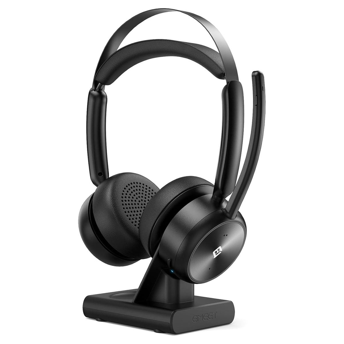 ワイヤレスヘッドセット Bluetooth5.2 充電スタンド付属 マイク搭載 ENC 通話ノイズリダクション 2台同時接続 27...
