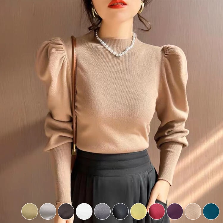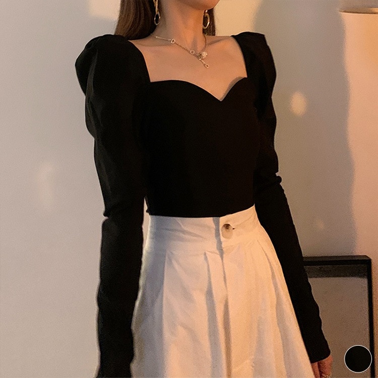 きれいめ ハートネック パフスリーブ 長袖 カットソー