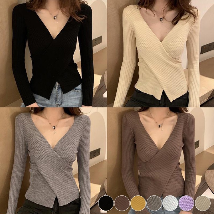 カシュクール風 クロスデザイン 長袖 ニット トップス