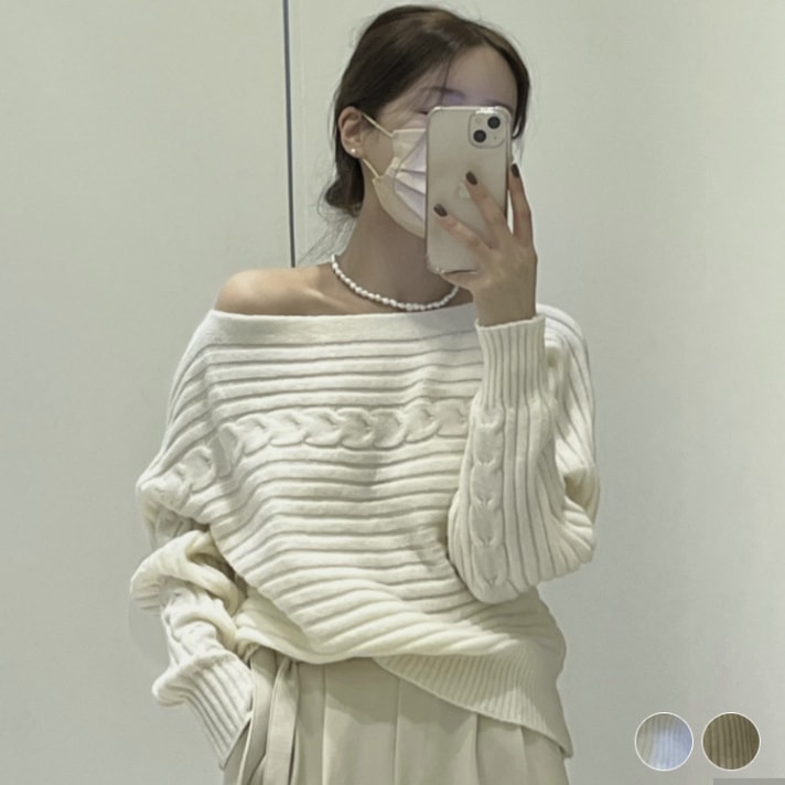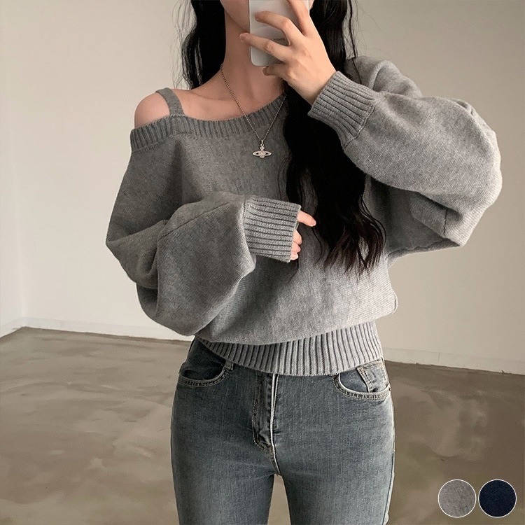スラッシュドネック オフショルダー ドルマン袖 ニット