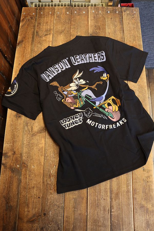 VANSON×LOONEY TUNES バンソン コラボ LTV-2506 天竺半袖Tee コヨーテ ロードランナー 刺繍Tシャツ...